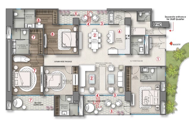 | 3 BHK + Servant | 2500 to 3000 SQ.FT |